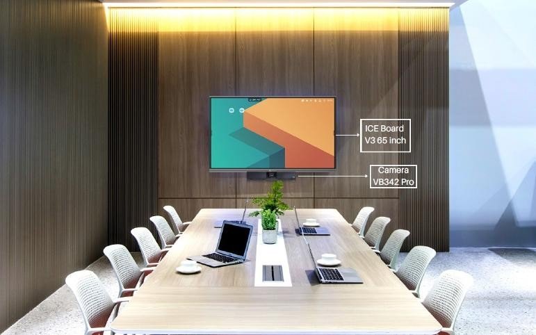 Meeting Room With INTERACTIVE FLAT PANEL Ice Board E2 Series 98 Inch