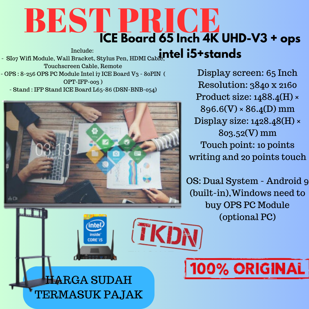 INTERACTIVE FLAT PANEL ICE BOARD 65 INCH 4K UHD - V3 + OPS INTEL I5 + STANDS