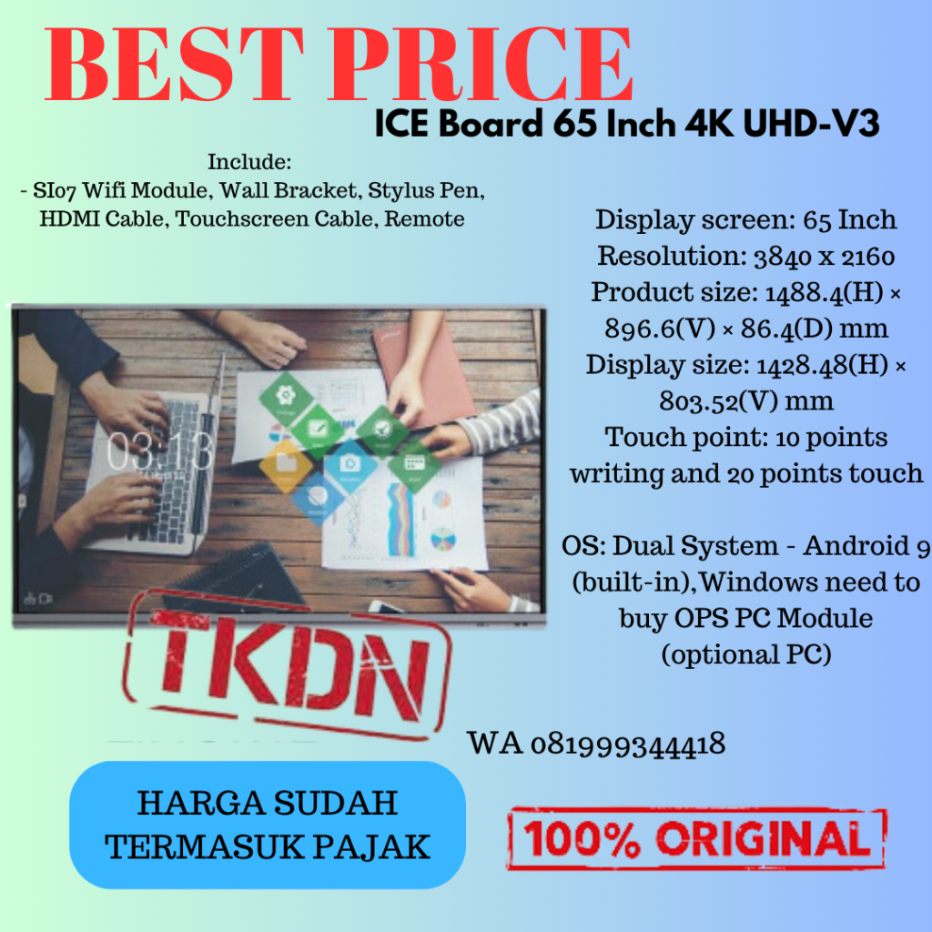 INTERACTIVE FLAT PANEL ICE BOARD 65 INCH​ 4K UHD-V3 + OPS INTEL i5
