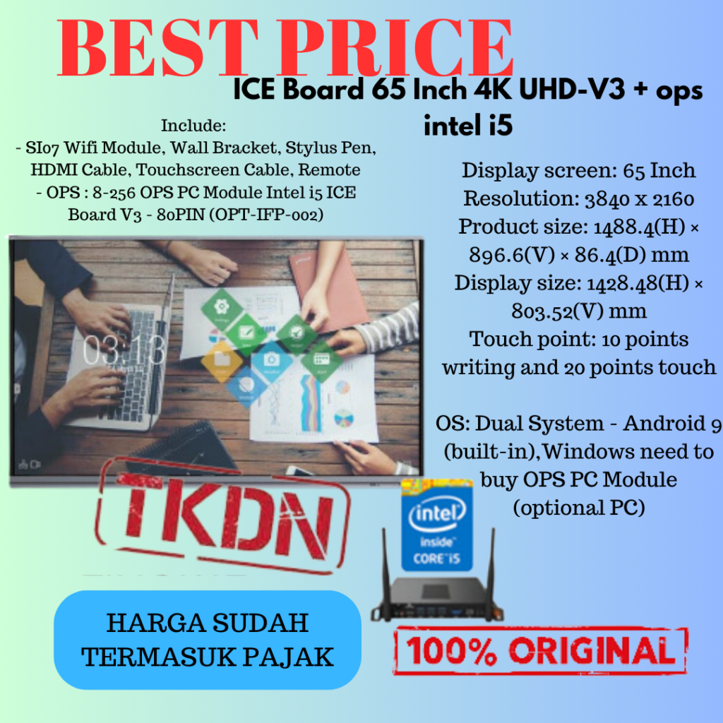 INTERACTIVE FLAT PANEL ICE BOARD 65 INCH 4K UHD - V3 + OPS INTEL I5